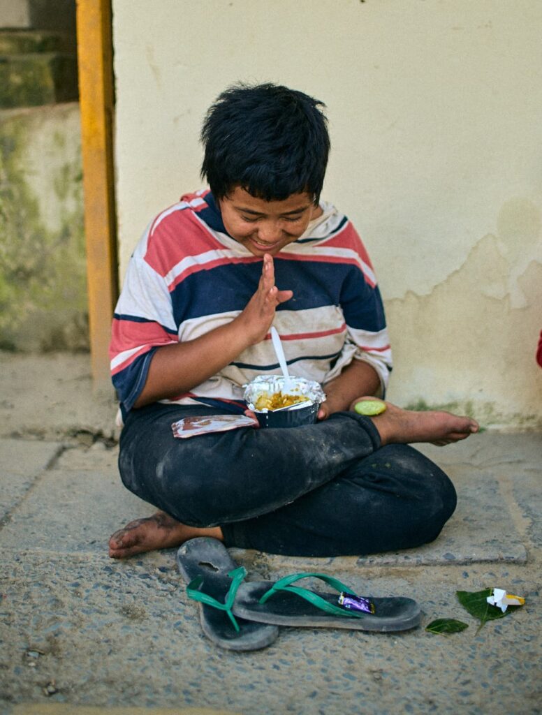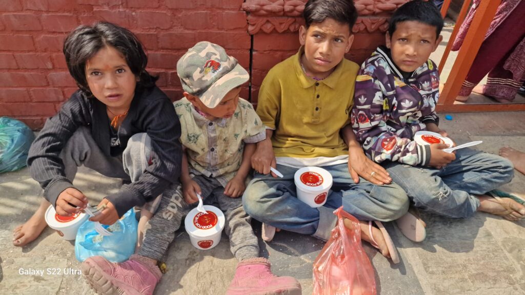 s Avonds slapen er veel daklozen. Food for the Poor Nepal komt één keer per week ’s nachts naar Jorpati om verse maaltijden uit te delen.